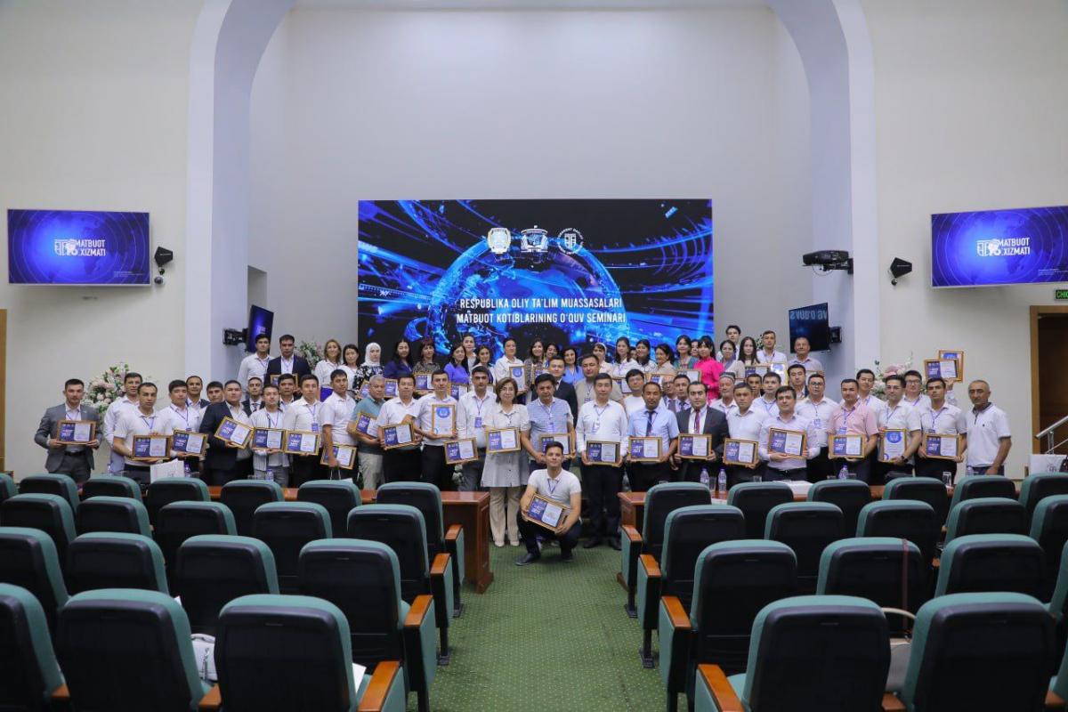 Seminar so'ngida barcha ishtirokchilarga sertifikatlar topshirildi. Quvonarlisi, Alisher Navoiy nomidagi Toshkent davlat o‘zbek tili va adabiyoti universiteti media makondagi har qanday holatga tezkor va xolis munosabat bildirish, shuningdek, vazirlik Axborot xizmati bilan hamkorlikda sohadagi islohotlarning OAV va ijtimoiy tarmoqlarda tezkorlik bilan yoritilishini ta'minlash borasidagi amaliy ishlari hamda Axborot xizmati faoliyatini namunali yo‘lga qo'ygani uchun tashakkurnoma va qimmatbaho sovg'alar bilan taqdirlandi.