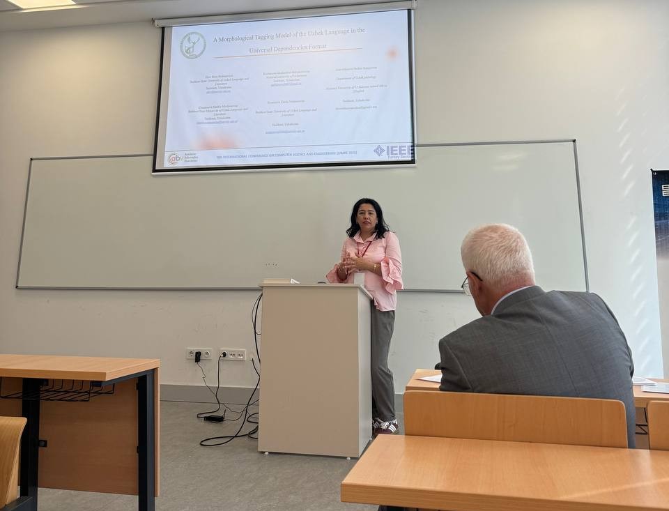 Alisher Navoiy nomidagi Toshkent davlat o‘zbek tili va adabiyoti universiteti Kompyuter lingvistikasi va raqamli texnologiyalar kafedrasi professor-o‘qituvchilari B. Elov, S. Normamatov, Sh. Hamroyeva, O‘zbek tilshunosligi kafedrasi prof.v.b. Manzura Abjalova, kafedra doktorantlari O. Abdullayeva, Z. Hayatova, tayanch doktorantlar N. Matyakubova, Sh. Abdisalomova, M. Samatboyeva, G. Maxmudjonova, shuningdek, tilshunoslik mutaxassisligi 1-kurs tayanch doktorant Y. Shodmonaliyeva va mustaqil izlanuvchi F. Tursunaliyevalar 2025-yil 17–21-sentabr kunlari Turkiyaning Istanbul texnika universitetida bo‘lib o‘tgan xalqaro “10th International Conference on Computer Science and Engineering (UBMK 2025)” konferensiyasida onlayn va oflayn shakllarda ishtirok etdilar. Tadqiqotchilar tomonidan NLP, LLM, til korpusi, NLP ilovalari va metodlariga bag‘ishlangan ma’ruzalar taqdim etildi va ular konferensiya ishtirokchilarida katta qiziqish uyg‘otdi.
