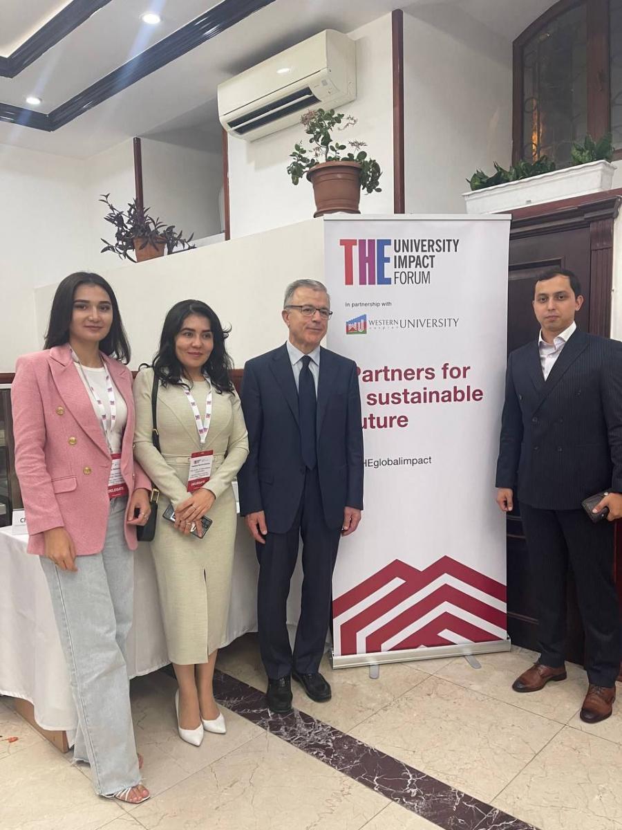 Ozarbayjonning nufuzli G‘arbiy Kaspiy universitetida xalqaro THE (Times higher education) reyting tashkilotining "Barqarorlik uchun hamkorlik" (THE University Impact Forum) forumi o‘tkazilmoqda. Forum jahonning ko‘plab oliy ta'lim muassasalari vakillarini bir maskanga jam qilgan holda, xalqaro reytingning eng muhim tarkibiy qismi — ta'lim sifati indikatori bo‘yicha takomillashtirilgan dasturni taqdim etadi. Alisher Navoiy nomidagi Toshkent davlat o‘zbek tili va adabiyoti universiteti joriy yilda THE reytingi bo‘yicha jahonning Top-1000+ universitetlar ro‘yxatidan joy olgan. Natijalarni tobora yaxahilab borish, xalqaro tajribani o‘rganish va yangi loyihalarni amaliyotga tatbiq etish uchun bu reyting tashkiloti tomonidan o‘tkazilayotgan rasmiy tadbirlarda ishtirok etish va tajriba oshirib borish zarur.
