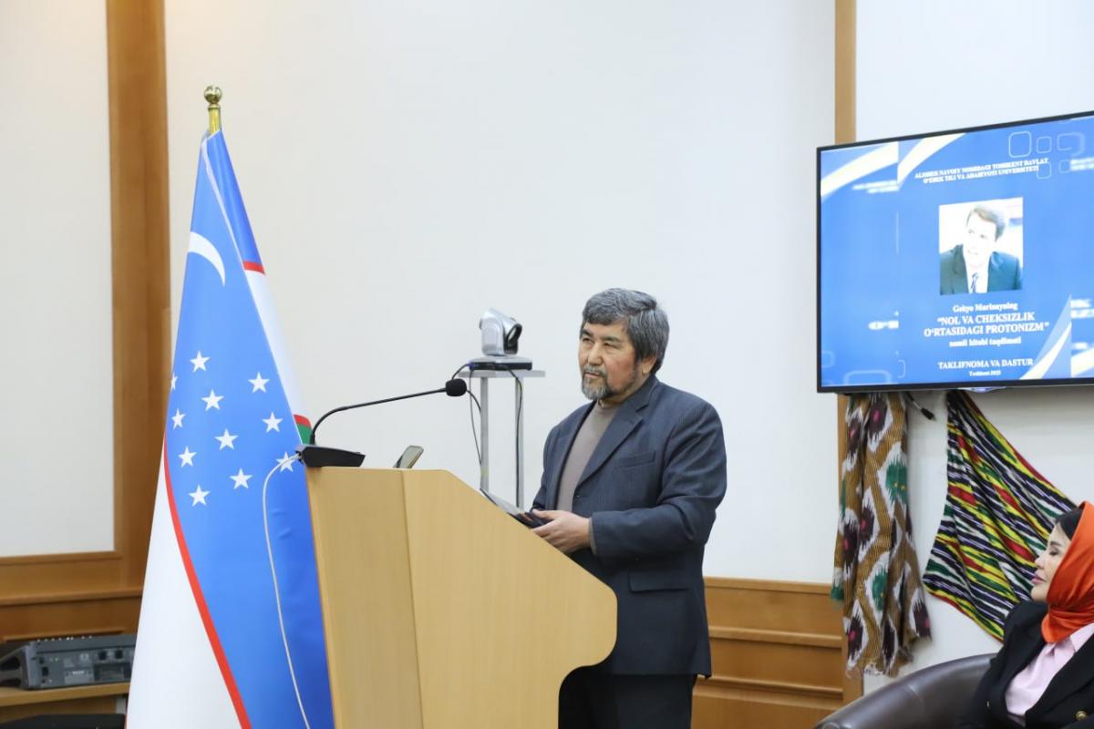 2025-yil 5-mart kuni Alisher Navoiy nomidagi Toshkent davlat o‘zbek tili va adabiyoti universitetida taniqli alban-amerikalik shoir, yozuvchi va munaqqid Gekyo Marinay bilan ijodiy uchrashuv bo‘lib o‘tdi. Tadbir universitetning Tarjima nazariyasi va amaliyoti kafedrasi hamda “Kitob dunyosi” gazetasi hamkorligida tashkil etildi. Tadbirni universitet Ilmiy ishlar va innovatsiyalar bo‘yicha prorektori, filologiya fanlari doktori, professor Nozliya Normurodova ochib berdi. Shundan so‘ng, O‘zbekiston Yozuvchilar uyushmasi raisi maslahatchisi, shoir Salim Ashur, filologiya fanlari doktori, professor Suvon Meli, filologiya fanlari doktori, professor, Jahon adabiyoti va qiyosiy adabiyotshunoslik kafedrasi mudiri Uzoq Jo‘raqulov, yozuvchi va dramaturg Qo‘chqor Norqobil, “Kitob dunyosi” gazetasi bosh muharriri, shoira Xosiyat Rustamova, filologiya fanlari nomzodi, Tarjima nazariyasi va amaliyoti kafedrasi dotsenti Qosimboy Ma’murov, filologiya fanlari nomzodi, O‘zbekiston Milliy universiteti dotsenti Xurshida Jalilova hamda filologiya fanlari bo‘yicha falsafa doktori, O‘zbek tili, adabiyoti va folklori instituti ilmiy xodimi Barchin Shukurova so‘zga chiqib, o‘z fikr-mulohazalarini bildirdilar. Tadbir davomida Gekyo Marinay o‘zining “Nol va cheksizlik o‘rtasidagi protonizm” nomli yangi kitobi haqida so‘z yuritdi. U kitob yozilish jarayoni, undagi asosiy g‘oyalar va falsafiy mushohadalar xususida batafsil ma’lumot berdi. Ishtirokchilar yozuvchi bilan ochiq muloqot qilib, o‘zlarini qiziqtirgan savollariga javob olishdi. Uchrashuv universitet talabalari, professor-o‘qituvchilari hamda adabiyot va tarjima sohasiga qiziquvchilar uchun mazmunli va foydali bo‘ldi. Tadbir yakunida muallif kitobining imzoli nusxalarini taqdim etdi.