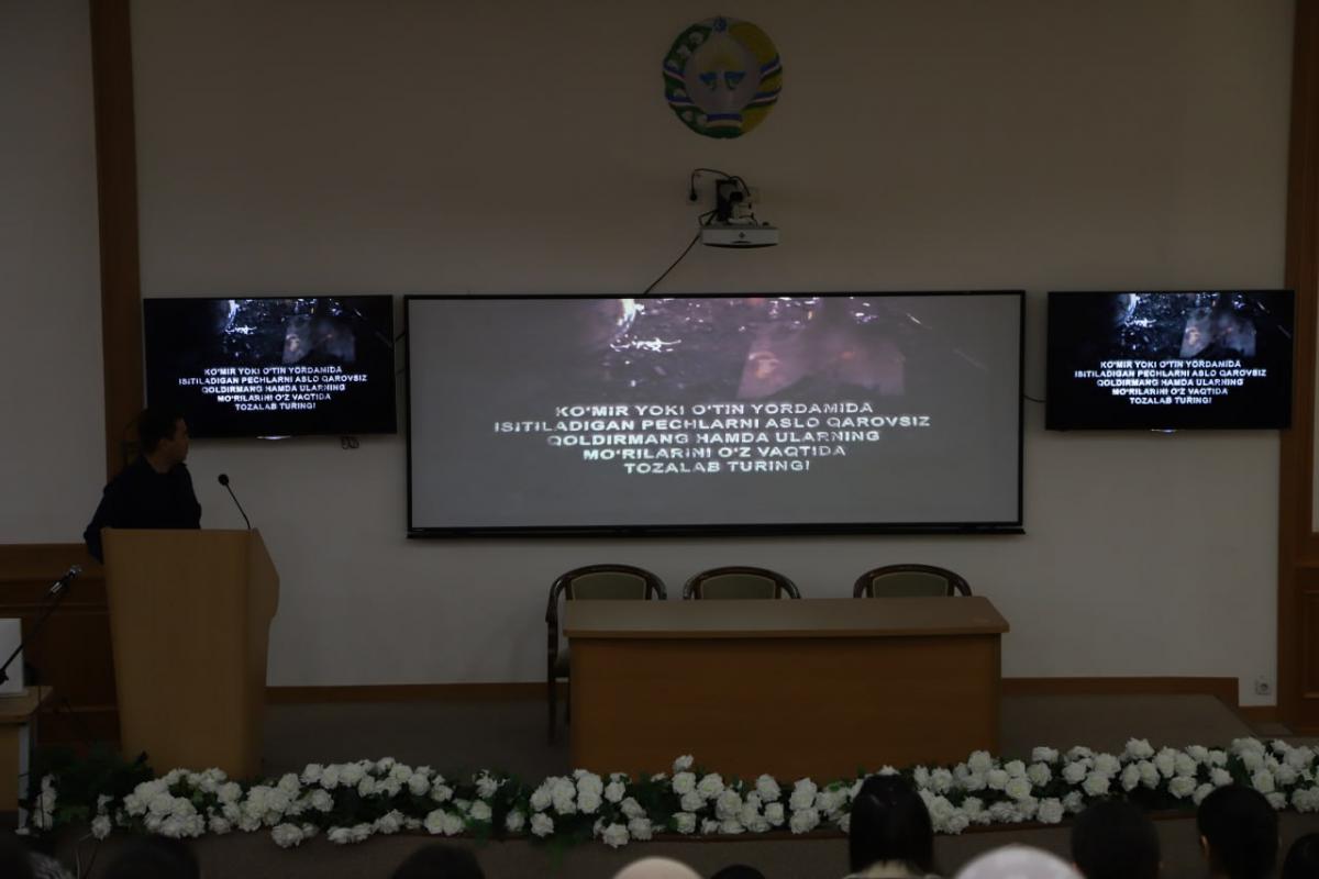 Yakkasaroy tumani Favqulodda vaziyatlar bo‘limi boshlig‘i O‘lmas Muhammadjonov va bo‘lim boshlig‘i o‘rinbosari podpolkovnik Karimov Begzod tadbir ishtirokchilari tomonidan berilgan savollarga atroflicha javob berdi. Shuningdek, bugungi kunda Toshkent shahrida aholining ehtiyotsiz va e’tiborsiz isitish tizimlaridan foydalanishi natijasida ro‘y bergan halokatli hodisalar haqida to‘xtalib o‘tdi. Tadbirdan so‘ng universitet hovlisida yong‘in sodir bo‘lganda qanday yo‘l tutish kerakligi, voqea joyida ishlash, o‘t o‘chirish jarayonlari ko‘rsatib berildi.