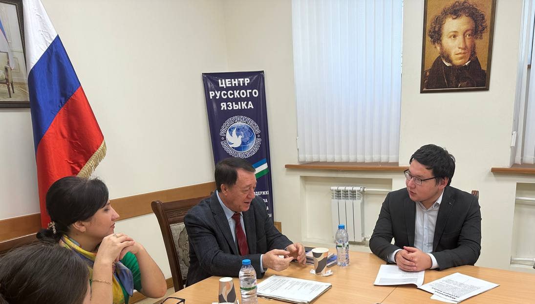 Joriy yilning 19-oktabr kuni universitetimizda faoliyat olib borayotgan Pushkin nomidagi rus tili va madaniyati markazida O'zbek tili kuniga bag'ishlangan tadbir bo'lib o'tdi. Tadbirda Xorijiy tillar kafedrasi o'qituvchilari, Markaz faollari va iste’dodli tarjimon, yozuvchi, pedagogika fanlari nomzodi Nikolay Ilin ishtirok etdi. Uchrashuvda Alisher Navoiyning ijodiy merosini chuqur o'rganish va ommalashtirishga ulkan hissa qo'shayotgan mohir tarjimon o'zining yangi to'plamlaridan she’rlar o'qib berdi, o'zbek shoirlari ijodidan qilingan tarjimalarni o'z ichiga olgan kitoblardan kafedraga va Markazga taqdim etdi. Xorijiy tillar kafedrasi mudiri Nargiza Rashidova so'zga chiqib, betakror o'zbek she’riyati bilan nafaqat rusiyzabon kitobxonlarni, balki butun ilm ahlini, she’riyat muxlislarini tanishtirishga o'zining munosib hissasini qo'shib kelayotgan olimning kelgusidagi ishlariga muvaffaqiyatlar tiladi. Ustozlar va yosh tarjimon talabalar o'zlarini qiziqtirgan savollariga javob olishdi. Kafedra ustozlari yosh tarjimon talabalar uchun tashkil etiladigan mana shunday uchrashuvlar, trening darslarining