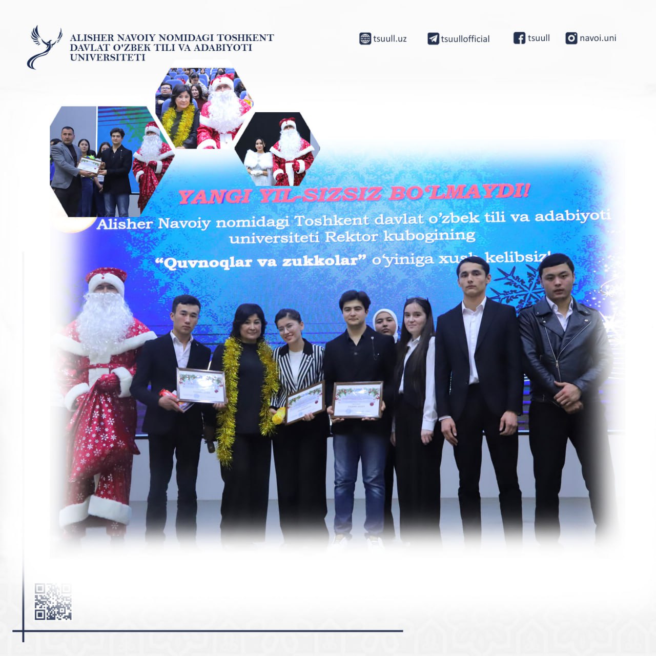 08 Jan 2026 25.12.2025 “Yangi yil — sizsiz bo‘lmaydi”: Universitetda bayramona karnaval va Rektor kubogi o‘tkazildi Batafsil